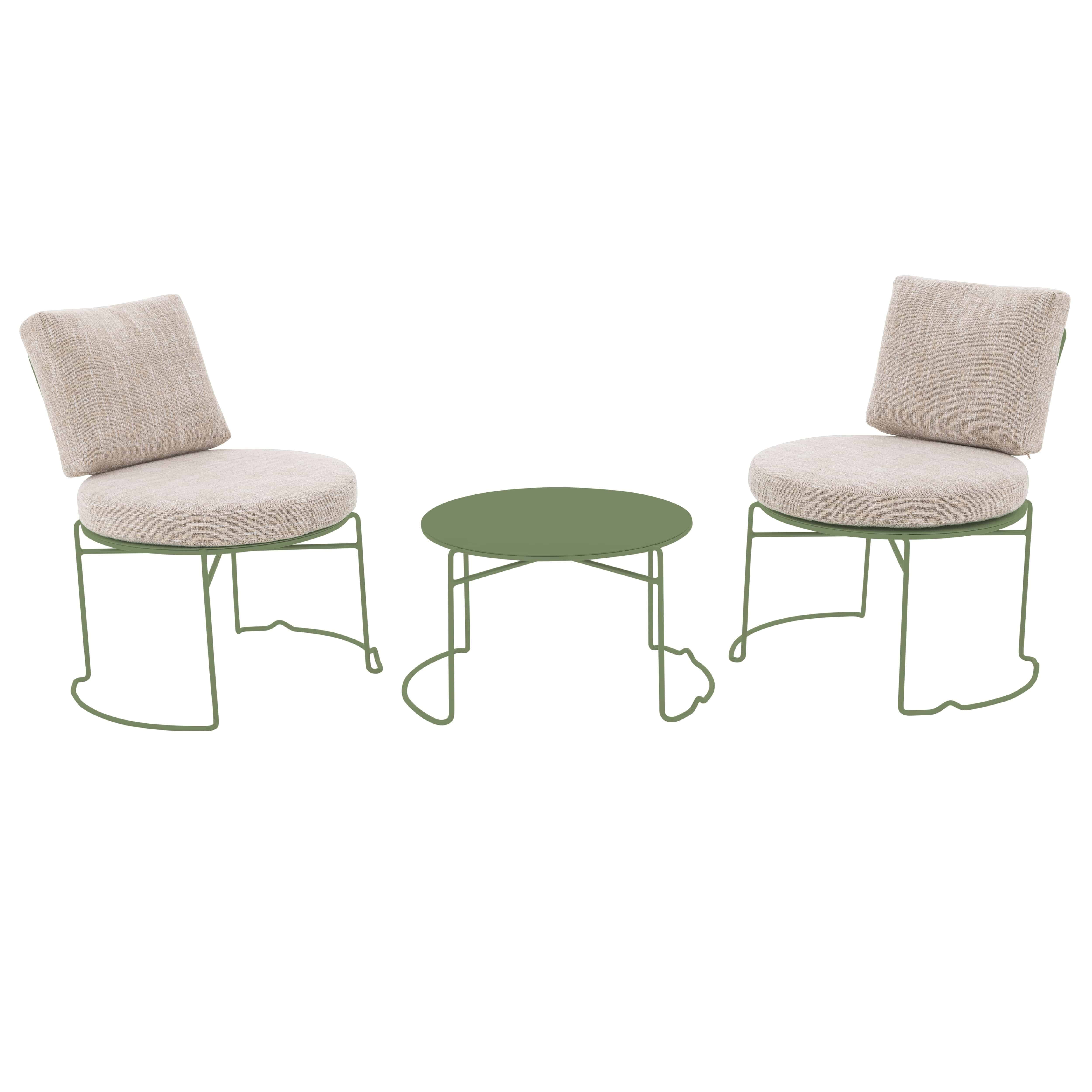 Modern balcony set consisting of two chairs and a lounge table.